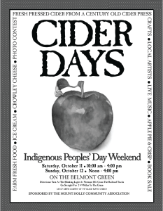 Of course, the fun starts with apples; you can watch fresh cider being made on an antique apple press, and enjoy the fresh-pressed cider, hot or cold, along with a cider donut, home-baked apple pie, or crisp topped with ice cream. You can even pick up a jug of fresh cider to take home. And there’s plenty of non-apple fun to enjoy too; Cider Days features live music, food, beer, and craft and art vendors, a kid zone for the little ones, along with a library book sale, and more to enjoy as you take in the fall colors in our historic village. You can also learn more about town at the Mount Holly Museum, right next to the Green.
